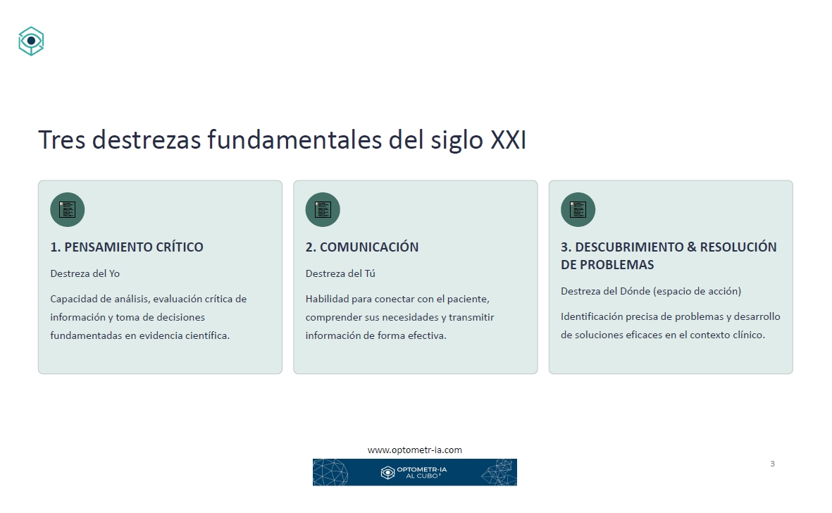 El programa combina sesiones asíncronas, material descargable, tutorías personalizadas y un entorno formativo accesible 24/7 a través del Campus Virtual de Optometr-IA al Cubo³.